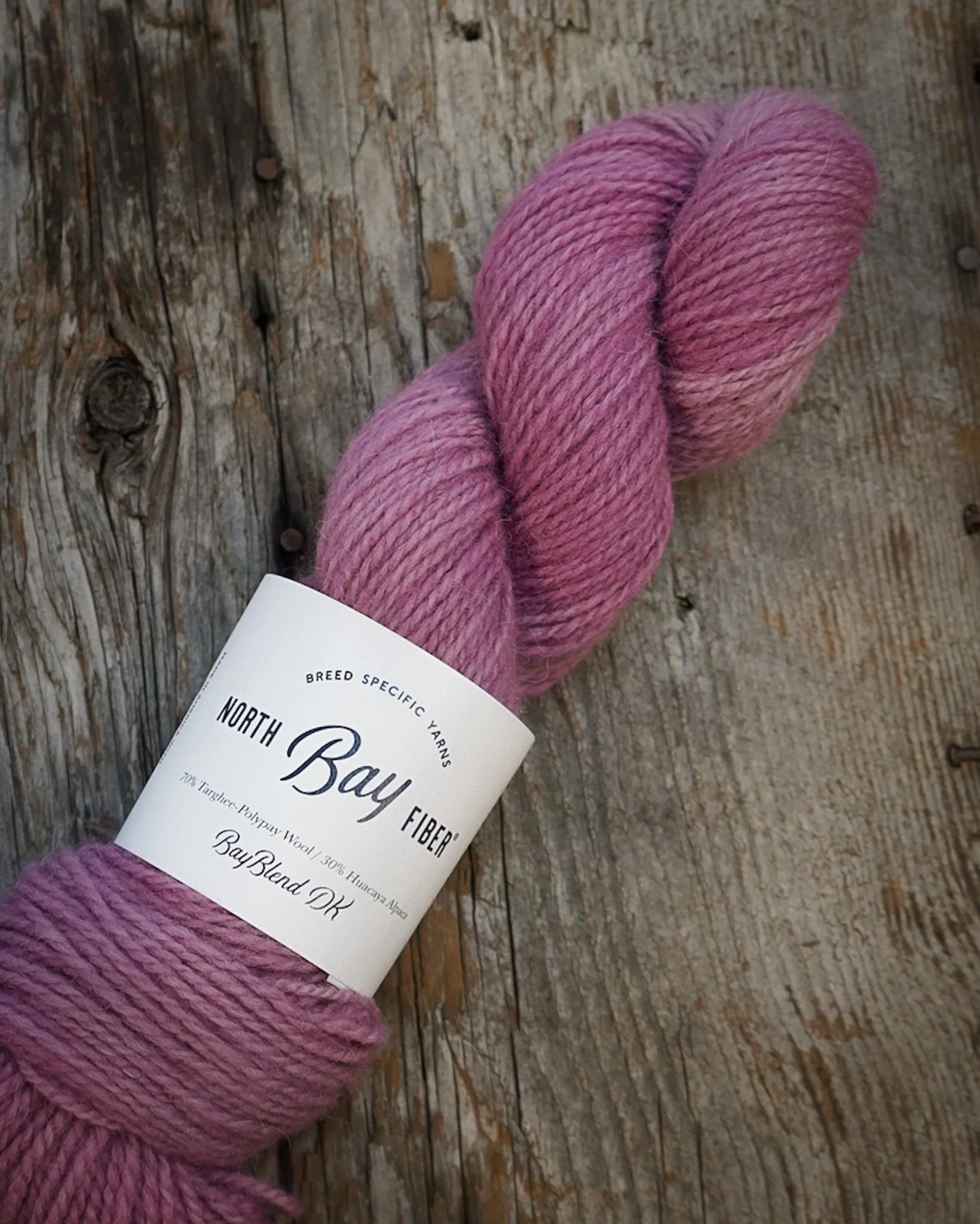 BayBlend DK brings together 70% Targhee-Polypay wool—the same source of our Heritage yarn line known for its fine, resilient fleece—and 30% Huacaya alpaca, prized for its softness and warmth. The result is a balanced yarn that’s soft yet durable, light yet full of body, making it a versatile choice for everyday knits.